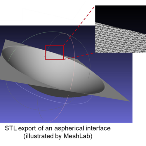 VirtualLab Fusion can export smooth and quantized interfaces, as well as mirror/prism/grating cells arrays into various file formats, e.g., STL file format, which is widely used for rapid prototyping, 3D printing, and computer-aided manufacturing, and GDSII file format, which is commonly used in lithographic exposure techniques.