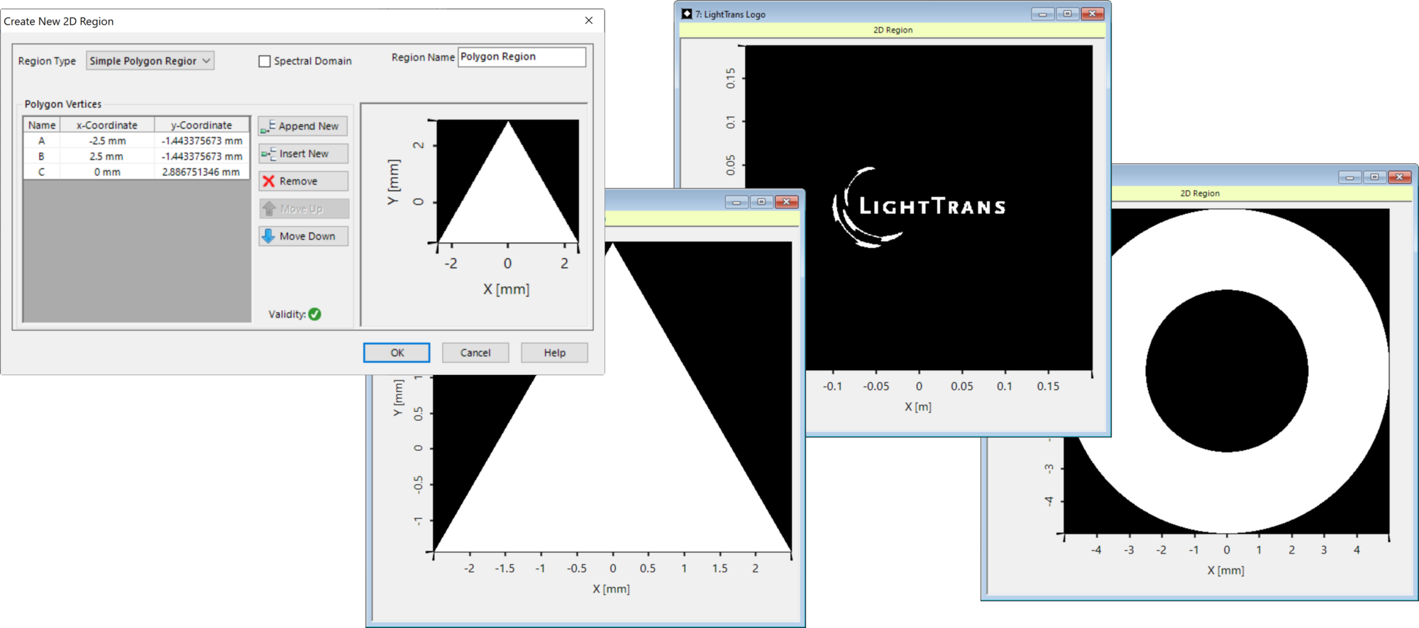 In VirtualLab Fusion, the concept of “region” (understood as a finite area defined on a plane, occasionally also 1D) is used for several purposes across the software: to determine the desired optimization region for the IFTA or the evaluation area for the Diffractive Optics Merit Functions detector, but also to define grating regions on the surfaces of light guides to perform the function, for instance, of couplers. To cover all of the above without restricting our users, the configuration of regions in VirtualLab Fusion is extremely flexible, with several off-the-shelf options as well as importing capabilities.