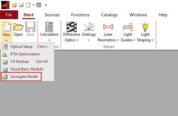 You can now create a surrogate model directly from the New menu in VirtualLab Fusion. The entry is available in multiple locations for your convenience: