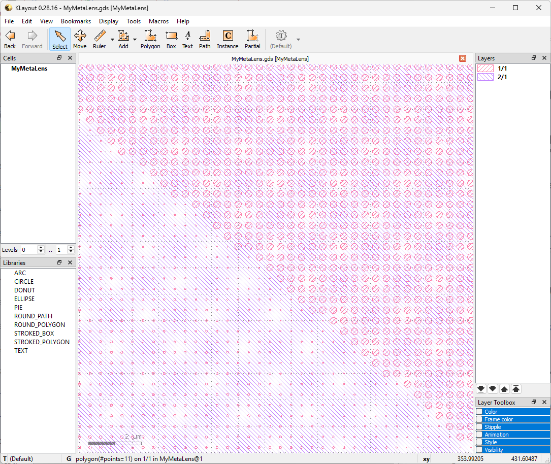 - Verify the output and inspect the generated GDSII file with standard GDSII viewers such as KLayout