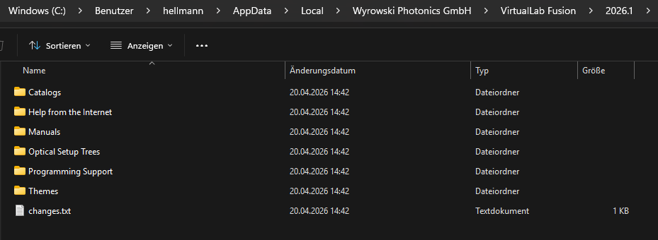 %localappdata%\Wyrowski Photonics GmbH\VirtualLab Fusion\2026.1directly into the address bar