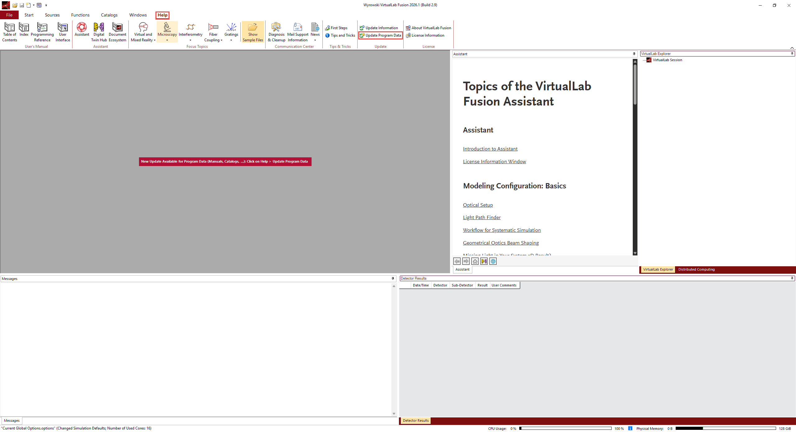 Keeping your program data up to date is important to benefit from all latest developments – including new Digital Twins. However, an older version of the program data does not prevent VirtualLab Fusion from functioning correctly.