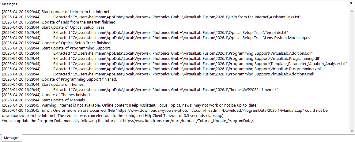 C:\Users\[UserName]\AppData\Local\Wyrowski Photonics GmbH\VirtualLab Fusion\2026.1
