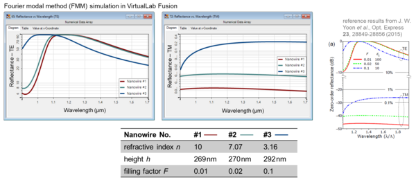 The polarization-dependent properties of ultra-sparse dielectric nanowire grids are analyzed by using the Fourier modal method (FMM, also known as RCWA).