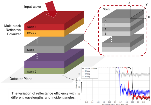 In this use case, the relationship between the number of alternate birefringent layers and the Bragg reflection condition is explored with VirtualLab Fusion. The variation of the reflectance efficiency with different wavelengths and incident angles is further investigated.