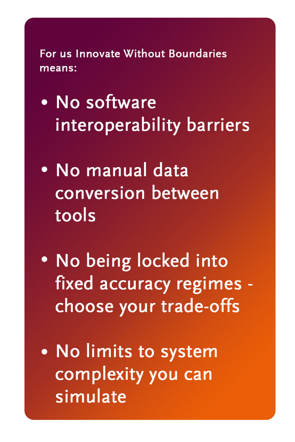 While our field-native paradigm ensures interoperability by using exact electromagnetic fields at the twin interfaces, we apply intelligent, application-specific approximations inside each twin’s model where physically justified. This delivers controlled trade-offs between simulation speed and accuracy based on your needs.