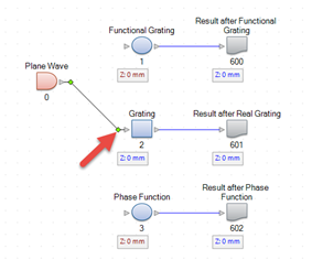 In some situations a user might want to compare the results of an optical setup using different configurations (e.g. using a phase function instead of a height profile). The optical setup view of VirtualLab Fusion supports such kind of situations in a sophisticated way. It is possible to build up both (or even more) configurations within one setup. By changing the connection from the active source to the first element to the other “path”, the user can switch between the different configurations with one click (drag & drop). The same procedure is valid in the middle of the system, should the first elements in the system be the same for all configurations. Especially during live demonstrations for your coworkers this is an efficient way of discussing different situations.