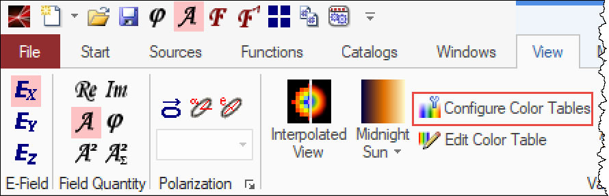 - For the visualization of 2D data VirtualLab Fusion provides a series of predefined color tables. With the VirtualLab Summer Release 2019 you have the option to configure new ones and add them to the predefined list. You simply have to click on the corresponding button in the view ribbon next to the selection of the color table currently used for visualization.