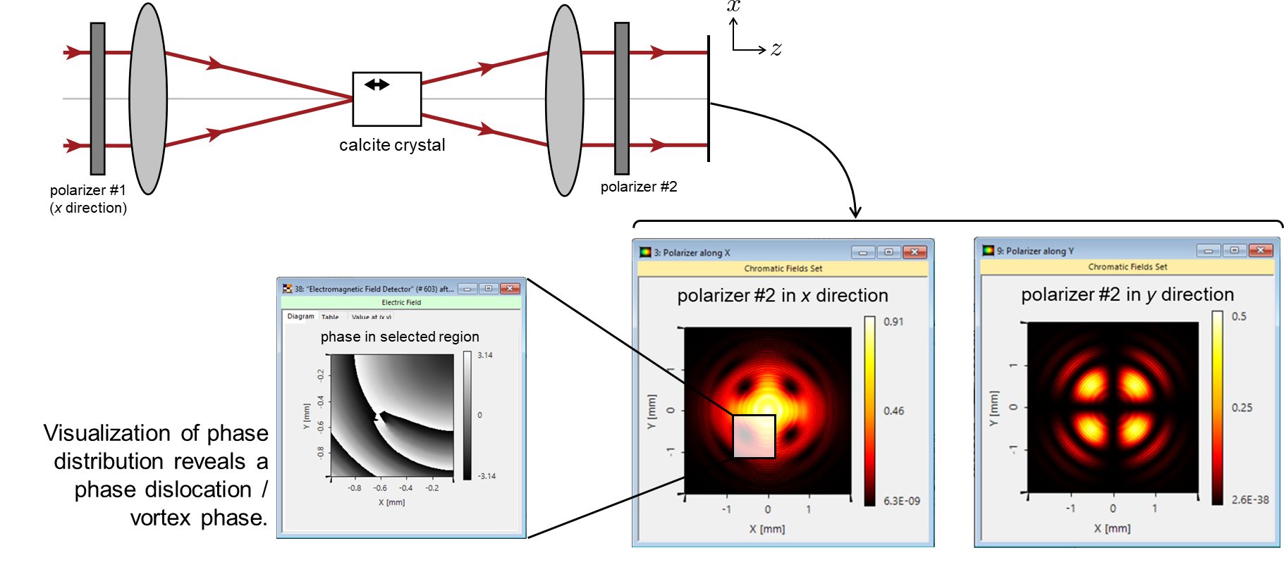 - The demonstration of well-known effects of uni- and biaxial crystals (like birefringence and conical refraction)