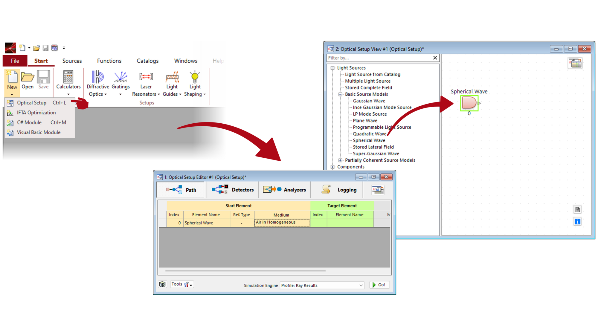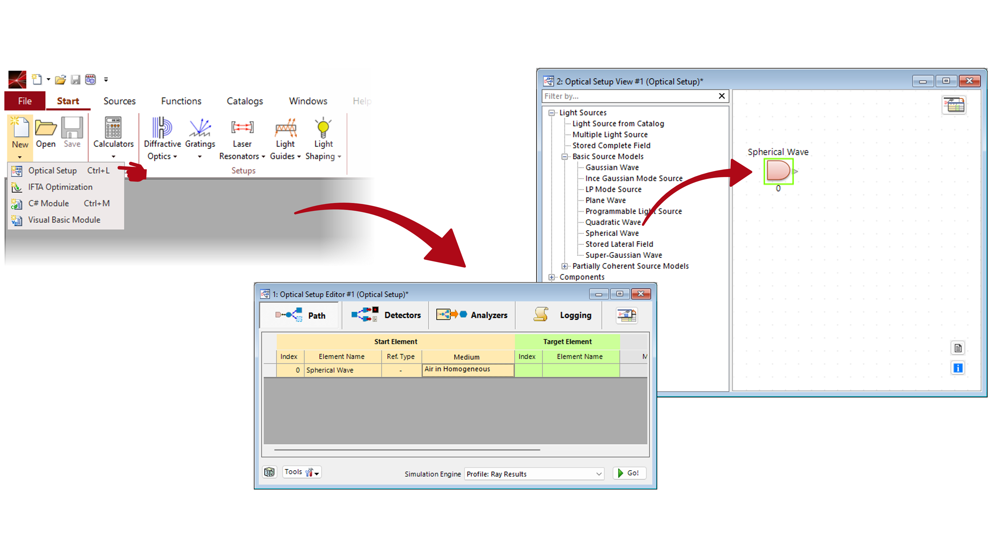 The main purpose of VirtualLab Fusion is to bring the experiments and research from the real world into a virtual one, with the Optical Setup serving as a kind of digital twin to a real-life laboratory. Here, the user can configure sources, components and detectors, control the positions and parameters of all components as well as define the materials that fill the space between them. This use case provides a general introduction to the concept.