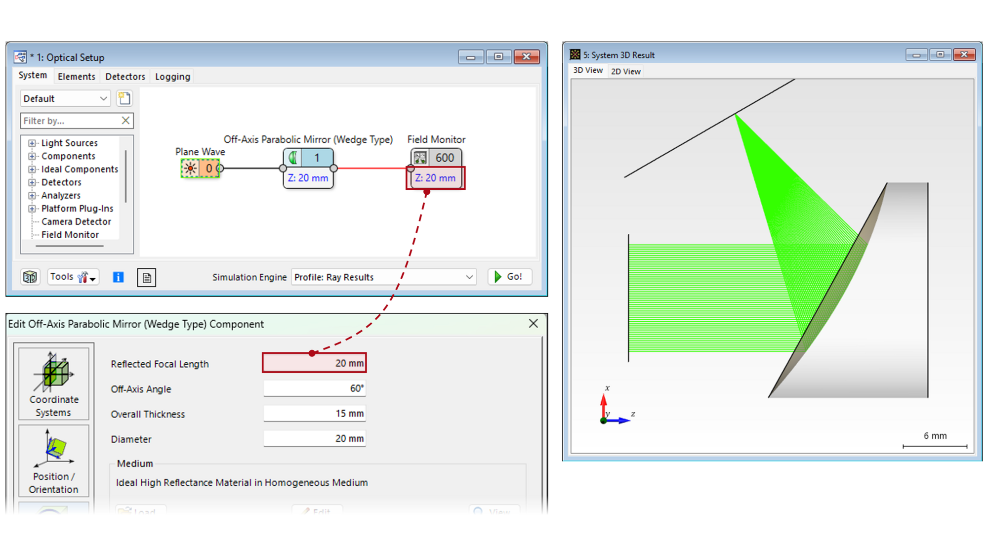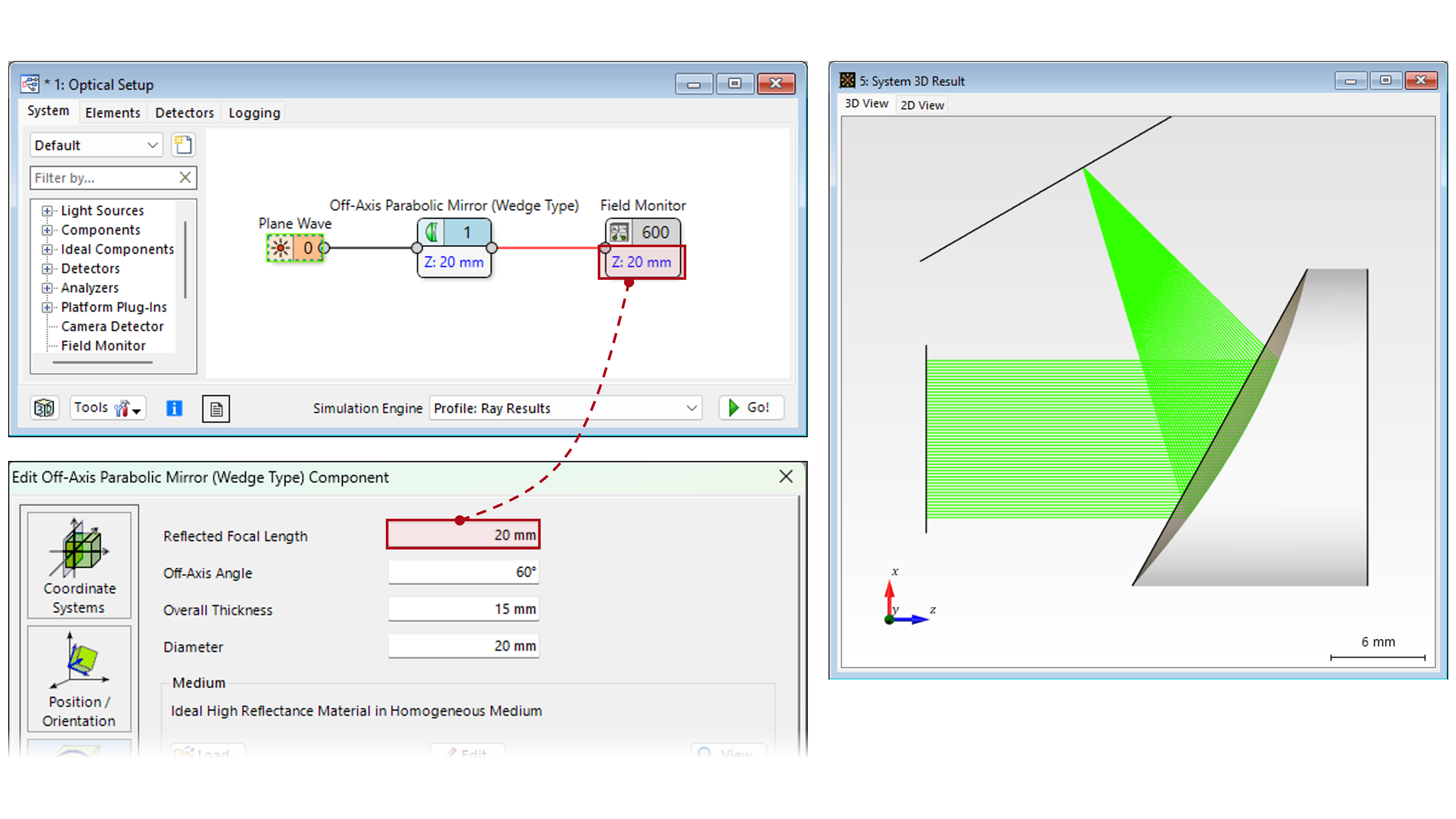 This tutorial demonstrates the Off-Axis Parabolic Mirror (Wedge Type) with examples of various focusing and collimation configurations.