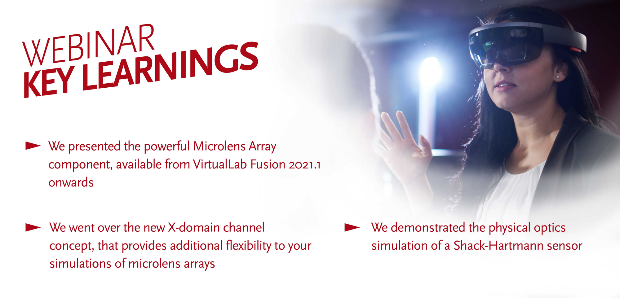 Below you can find the video and slides of the Advanced Modeling of Microlens Arrays with VirtualLab Fusion webinar.